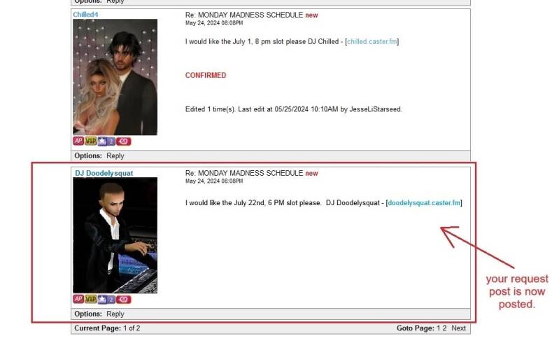 Follow the instructions on the next 3 pictures to sumbit a Request (Reply Post) for a DJ Slot......