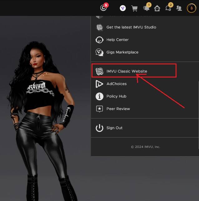 After scrolling down on the selections available, you will see "IMVU Classic Website". Click on this.